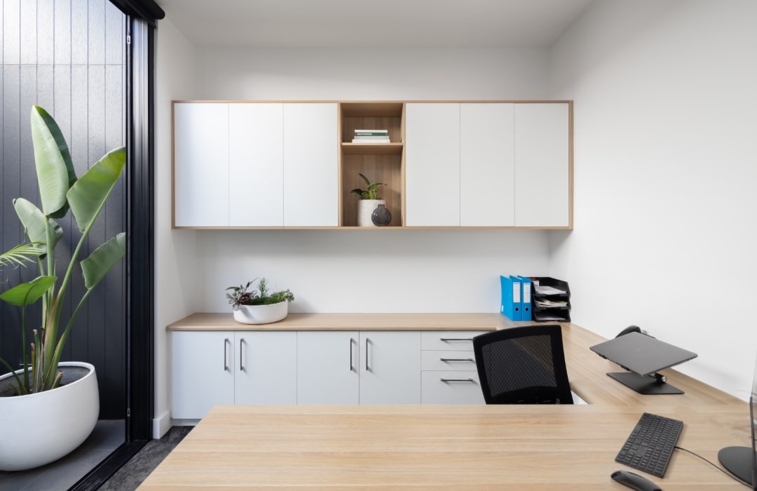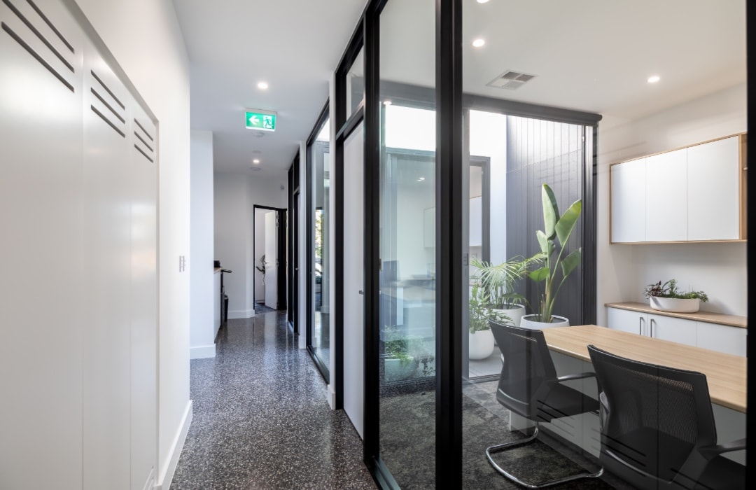 Purpose-built as a working builder’s premises, this custom space showcases a considered balance of natural materials, high-quality finishes, passive solar design, and everyday functionality. Despite an east-west site, the building is carefully oriented to maximise northern light, complemented by raked ceilings, a southern atrium, and seamless indoor-outdoor entertaining. Cross-flow ventilation and thermal mass elements support year-round comfort and efficiency. Designed as a place our team genuinely enjoys working in; inspections are available by appointment.