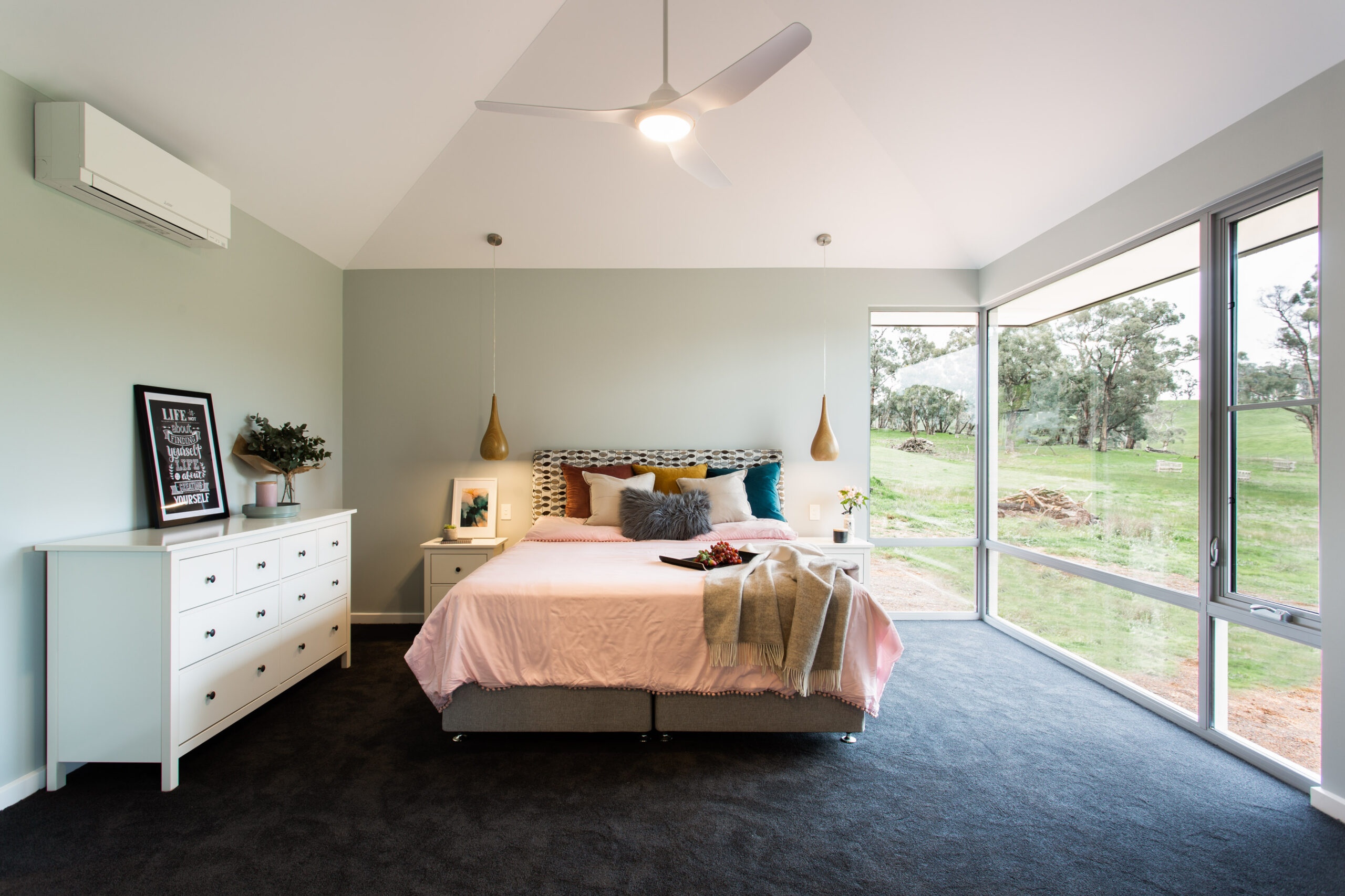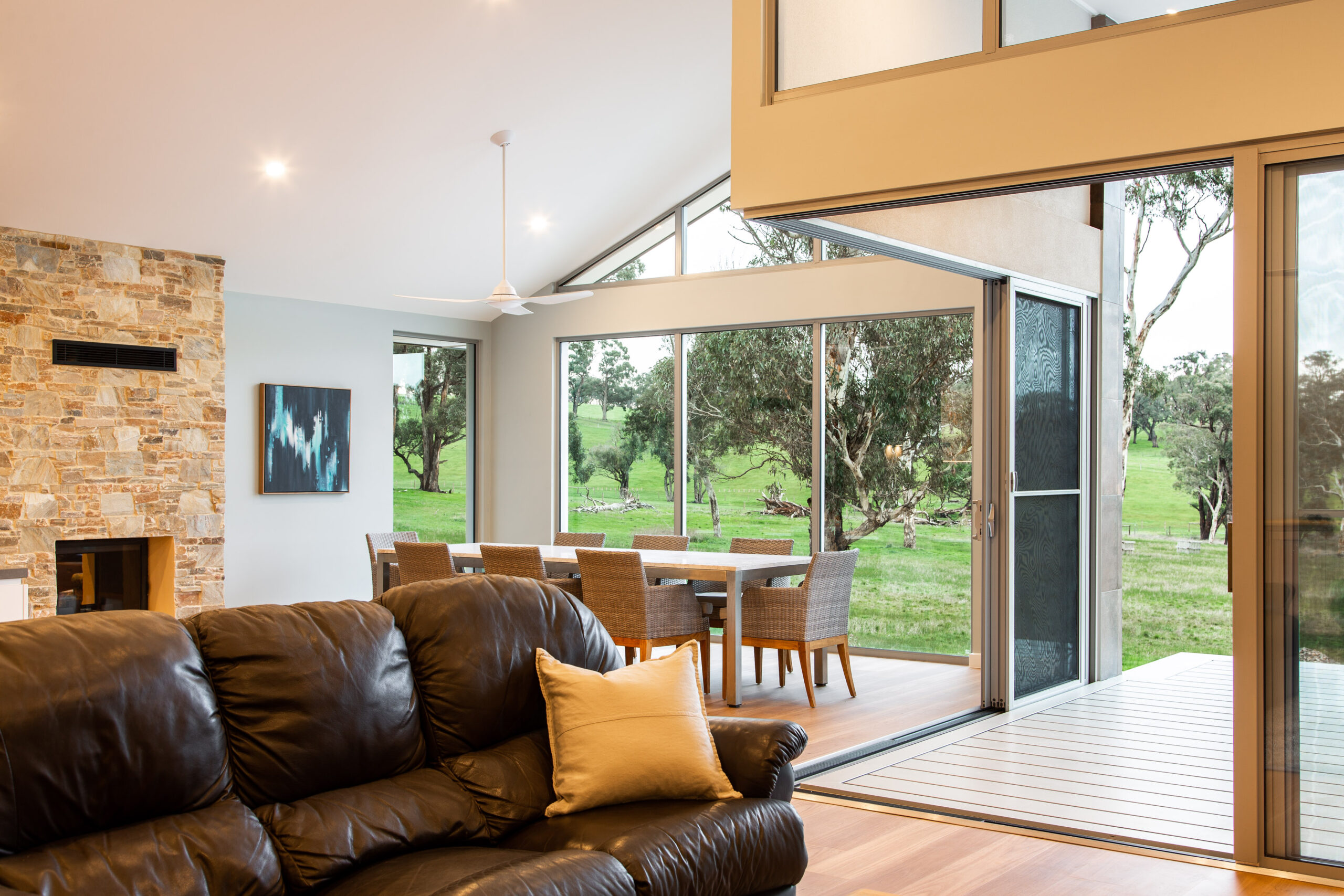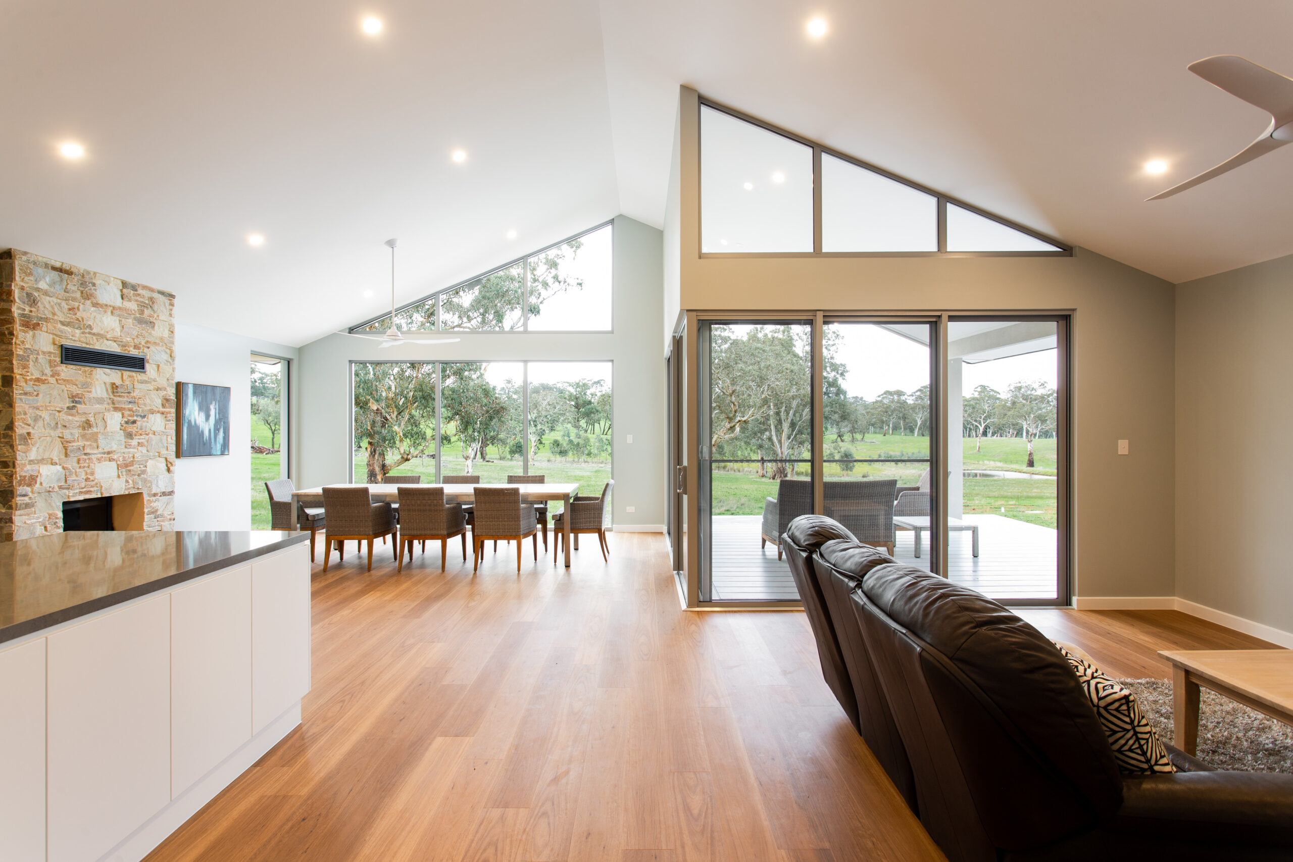 This custom home features three generous bedrooms, including a private master wing with its own lounge retreat. A spacious open-plan kitchen and living area is framed by large windows capturing the surrounding landscape, while sliding stacker doors open to an expansive deck designed for effortless alfresco entertaining. Thoughtfully planned for relaxed living and hosting, the home combines comfort, beautiful views, and welcoming spaces to gather.