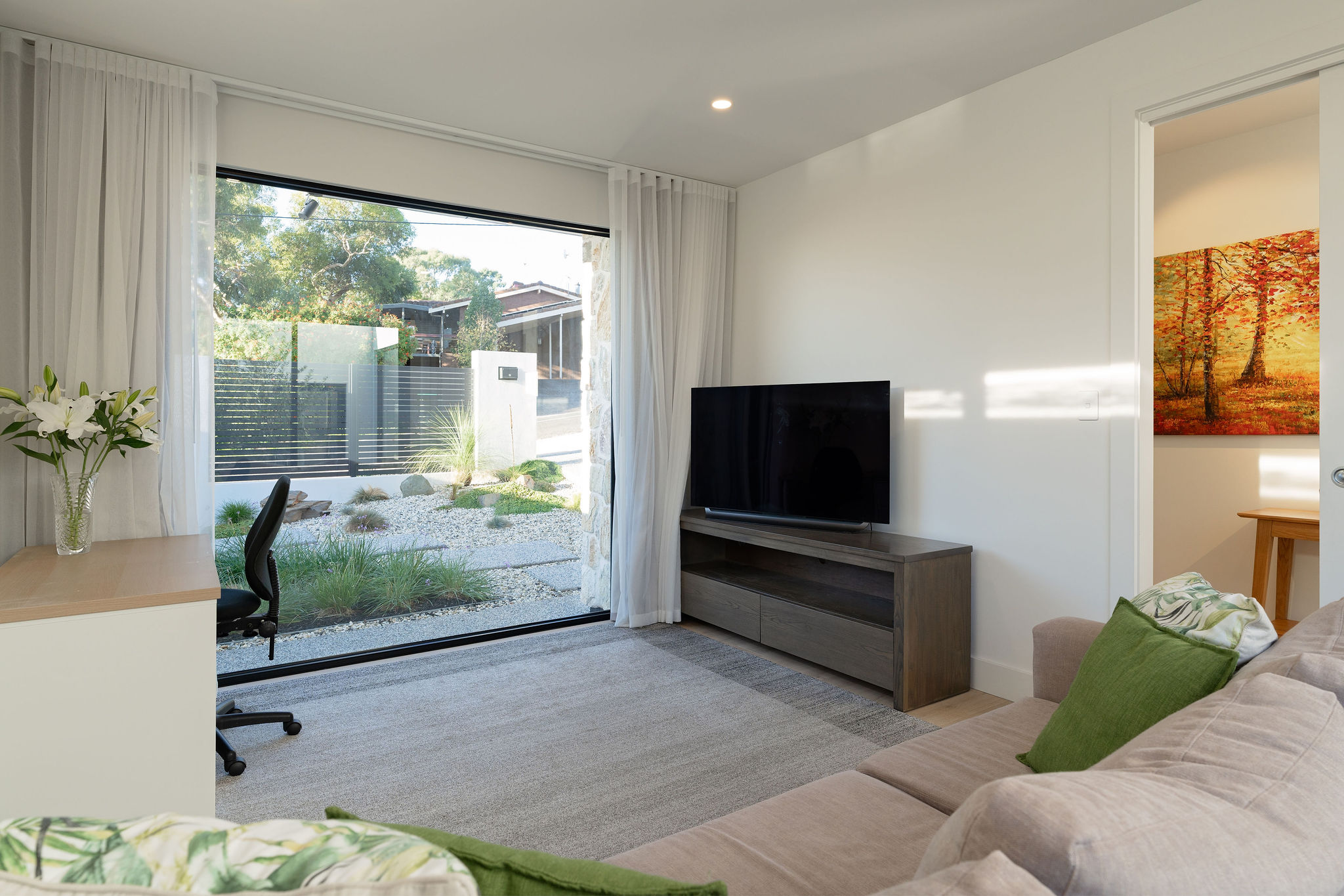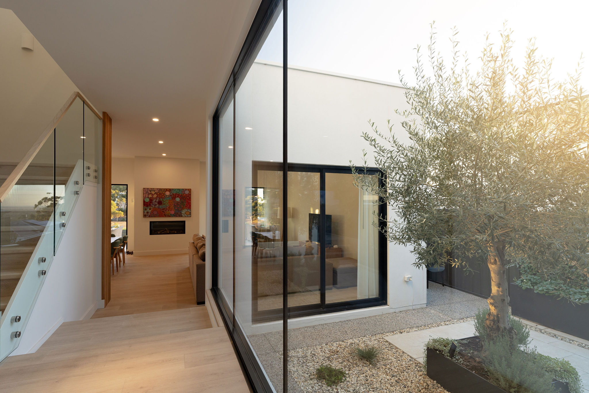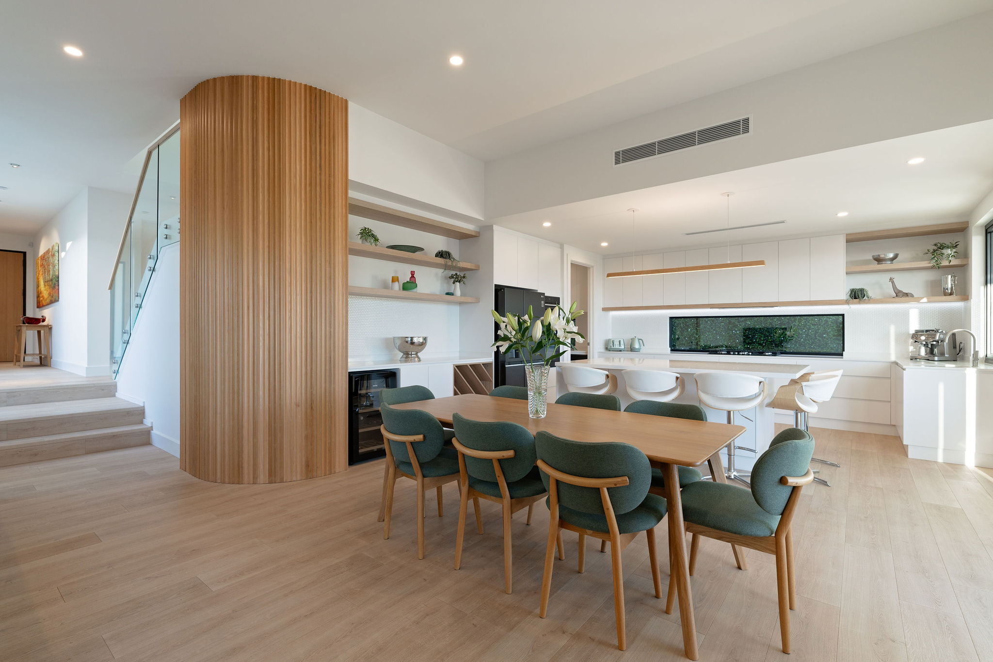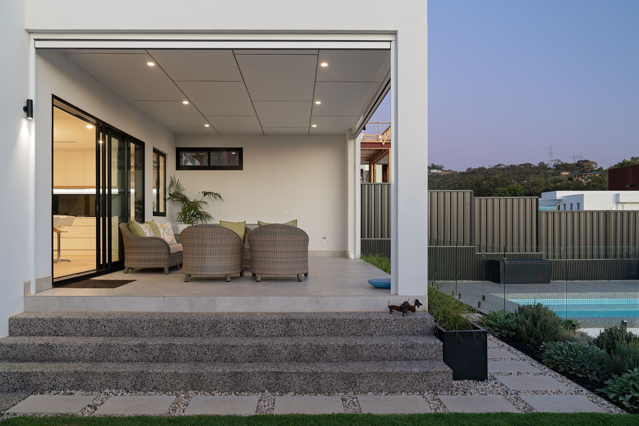 This custom-designed home was thoughtfully created for family living, featuring an entertainer’s kitchen and a resort-style backyard. From the curved oak feature wall to the striking atrium with an olive tree at its centre, every detail speaks to refined, sophisticated living. Set high above the city, the home also offers sweeping views of the Adelaide skyline.